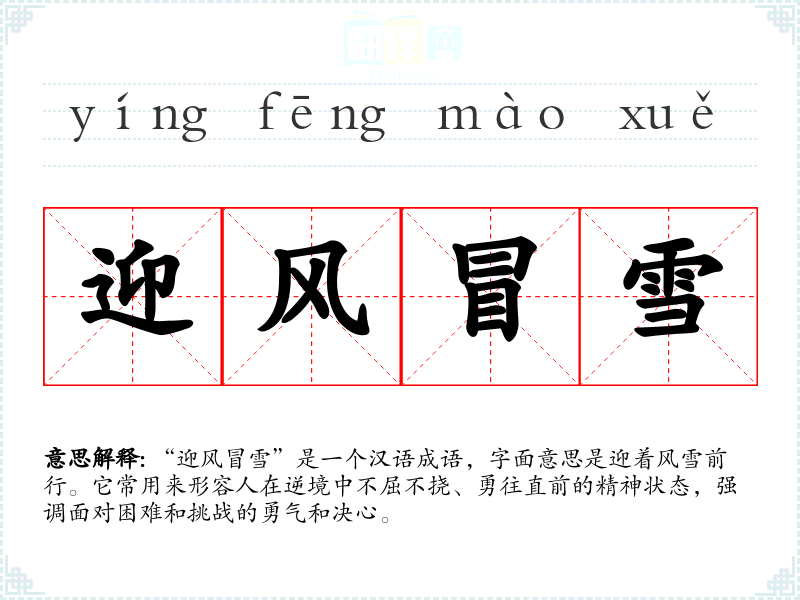 该成语并没有明确的出处,但它的构成源于**古代文人对自然环境的描绘和对人生态度的反思。在古代文学中,风雪常常象征着艰难险阻,而迎风冒雪则体现了古人勇于挑战、坚韧不拔的精神品质。