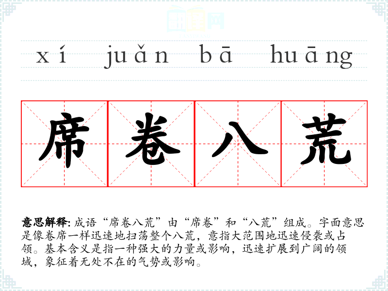- 反义成语:微不足道、举步维艰,表达力量或影响微小的状态,正好与“席卷八荒”形成对比。