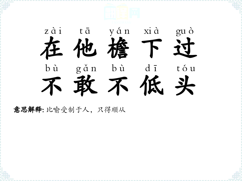 既:已经,已然;檐:屋檐。比喻在强大的压力之下,不得不向对方屈服。指依附或有求于人,只得委曲求全。 |