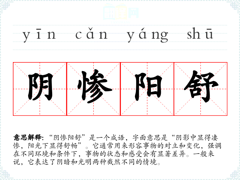 通过对“阴惨阳舒”的分析,我更加理解了事物变化的双面性,以及在生活中保持乐观的重要性。这不仅丰富了我的语言表达能力,也让我在面对困难时能够更好地调节自己的情绪,寻找积极的解决方案。