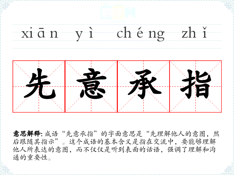 - 演讲:在演讲中提到“先意承指”可以强调理解他人意图的重要性,尤其是在团队合作或领导力的讨论中。