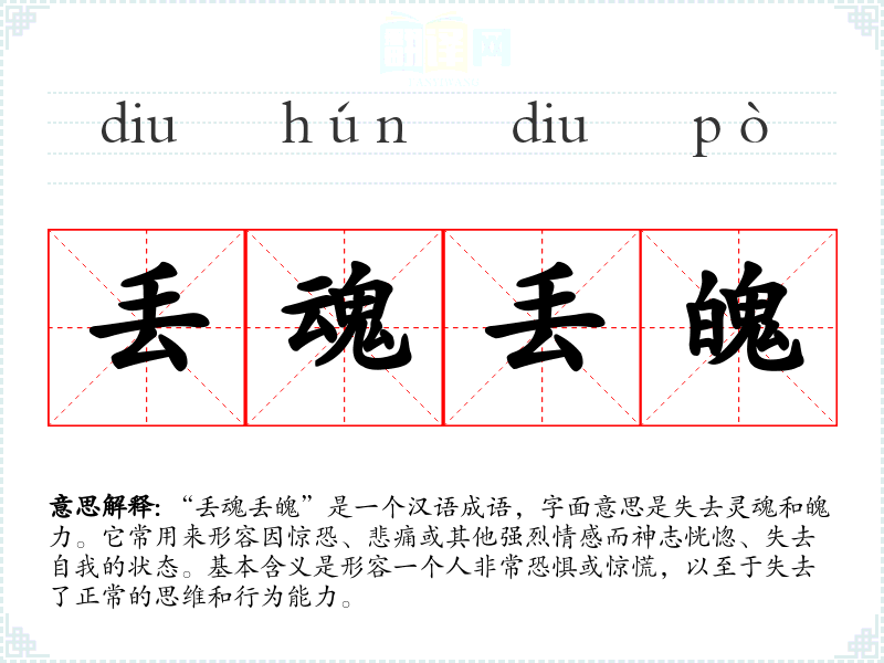 通过对“丢魂丢魄”的学,我理解到语言不仅是交流的工具,更是文化和情感的载体。这个成语在表达惊恐和无助时具有独特的表现力,让我在学和使用汉语时更能感受到语言的深度和美感。