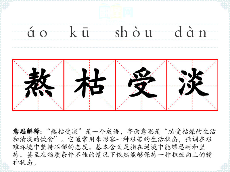 | 熬枯受淡 | 指忍受清苦的生活。 |