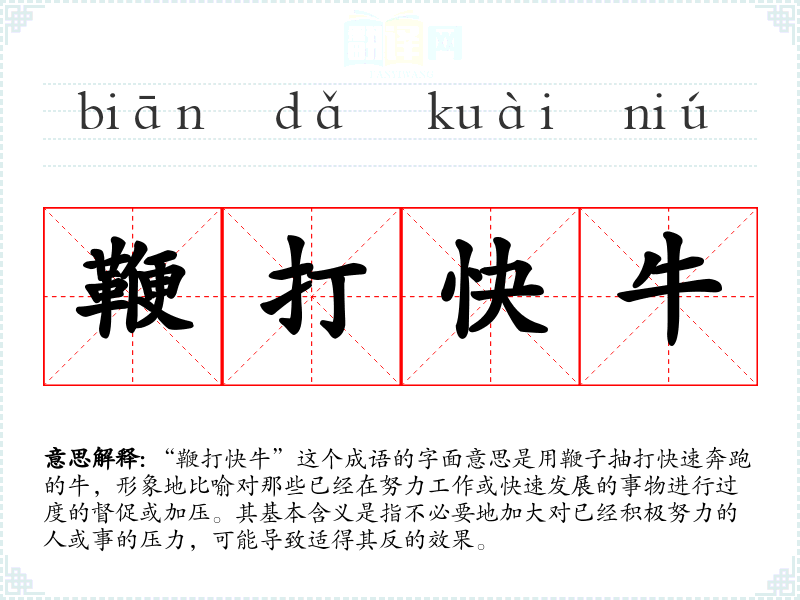 - 他已经在努力工作了,没必要再用“鞭打快牛”的方式去逼他。