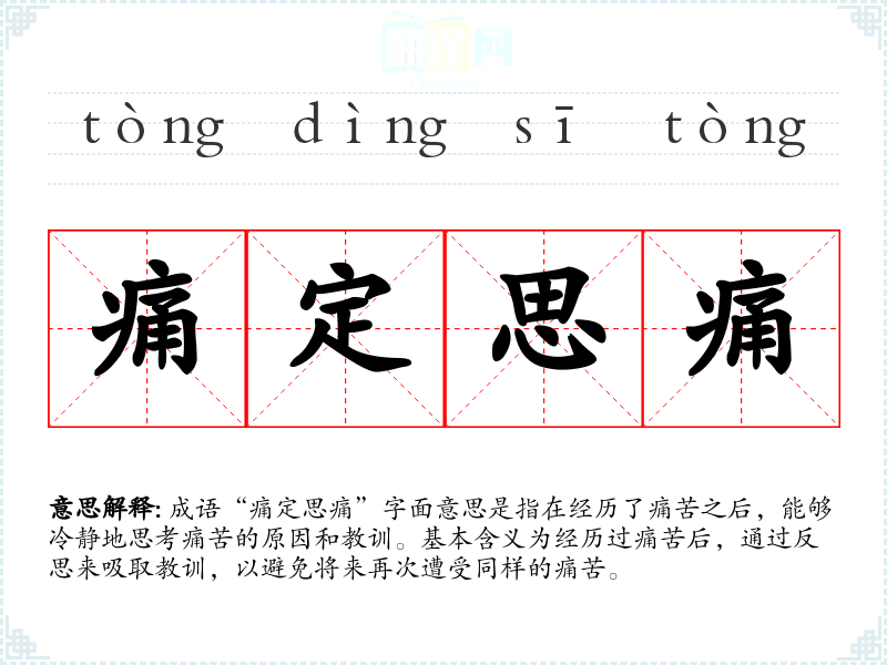 - 演讲:在主题为自我提升或人生哲学的演讲中,使用“痛定思痛”可以增强论点的深度。