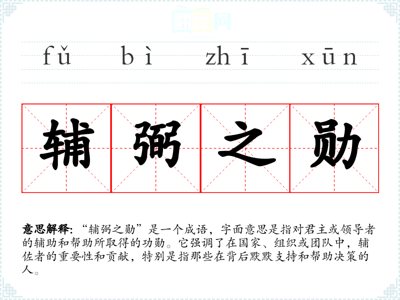 “辅弼之勋”是一个成语,字面意思是指对君主或领导者的辅助和帮助所取得的功勋。它强调了在国家、组织或团队中,辅佐者的重要性和贡献,特别是指那些在背后默默支持和帮助决策的人。