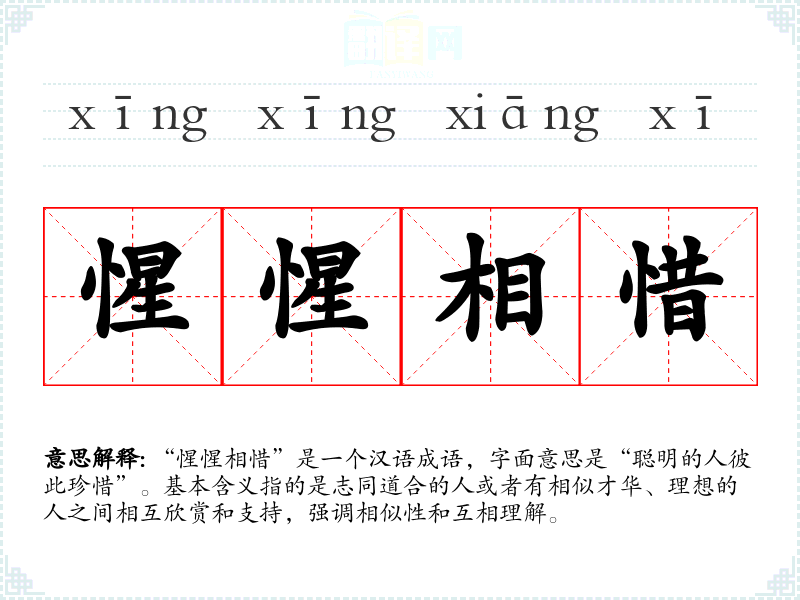 “惺惺相惜”是一个汉语成语,字面意思是“聪明的人彼此珍惜”。基本含义指的是志同道合的人或者有相似才华、理想的人之间相互欣赏和支持,强调相似性和互相理解。