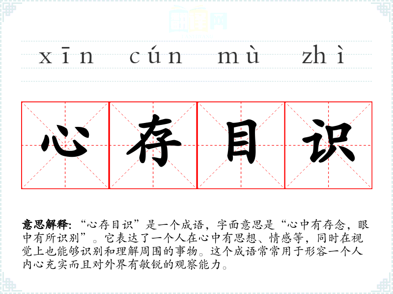 在英语中,类似的表达可以是“mindfulness”,强调对当下的关注与觉察。虽然“心存目识”更加强调内心与外界的联系,但两者都体现了对生活的深刻理解和意识。
