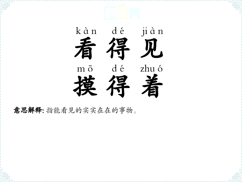指能看见的实实在在的事物。 |