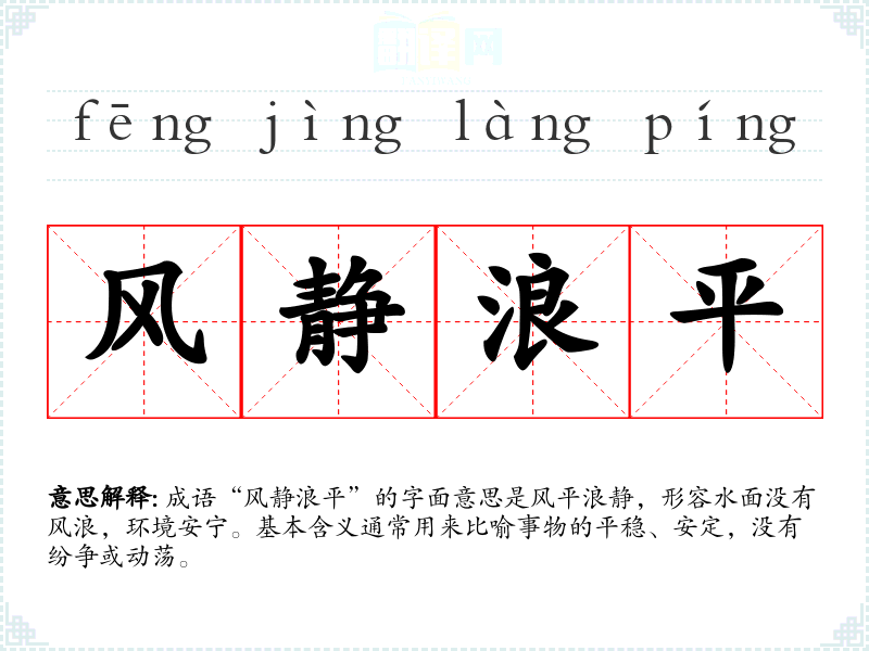 - 风平浪静:与“风静浪平”意涵相同,强调环境的安宁。