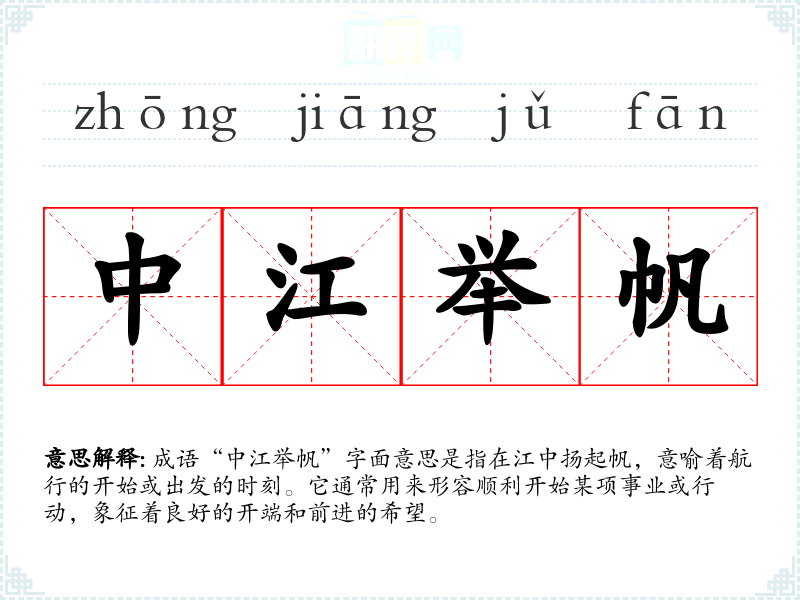 - 日常对话:可以用于朋友之间的鼓励,例如在朋友准备创业或参加考试时,可以说“希望你在这个新阶段中江举帆,顺利起航”。