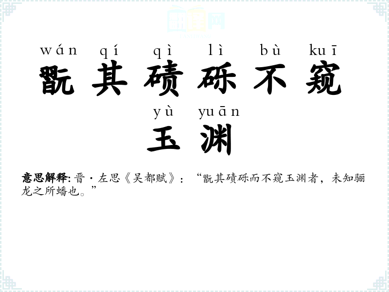 晋·左思《吴都赋》:“翫其碛砾而不窥玉渊者,未知骊龙之所蟠也。” |