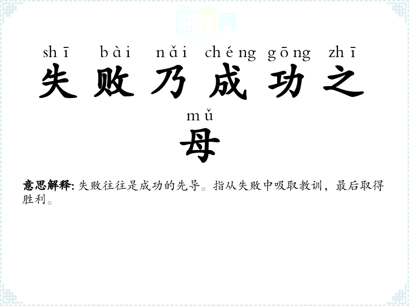 母:先导,根源。失败往往是成功的先导。指从失败中吸取教训就能取得胜利。 |