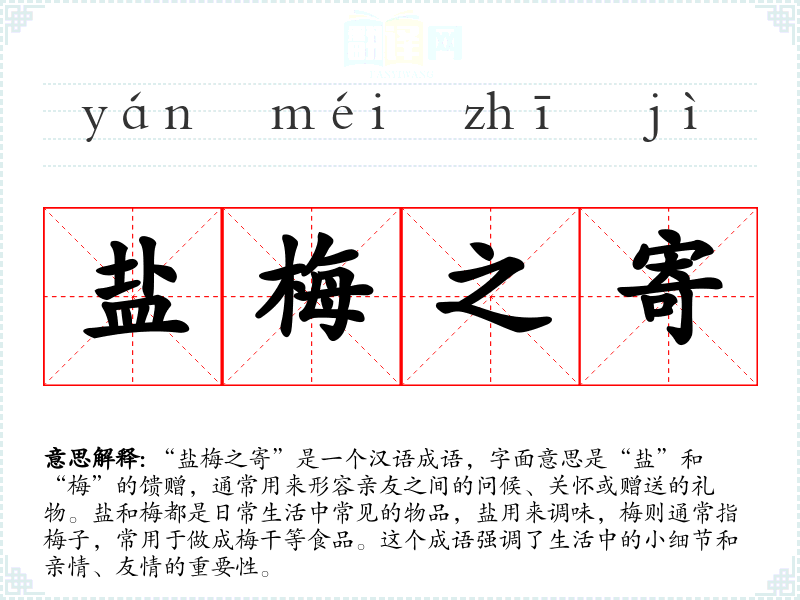 - 日常对话:朋友之间互相问候时,可以提到“盐梅之寄”来表达关怀。