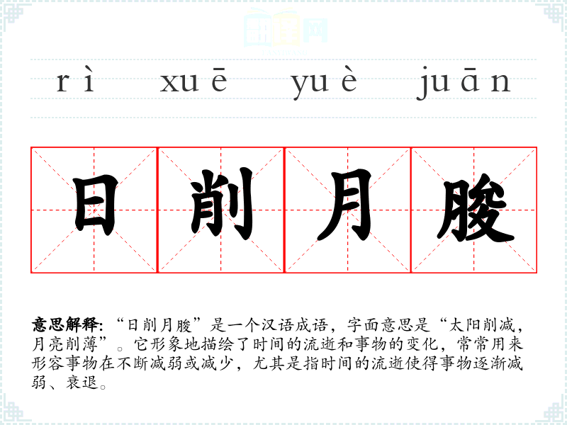 该成语出自《后汉书·冯衍传》,原文是“日削月朘,四时更替”,用以描述时间的流逝和自然变化。它不仅反映了自然界的规律,也揭示了人生的无常和事物的易变。