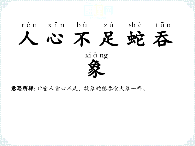 比喻人贪心不足,就象蛇想吞食大象一样。 |