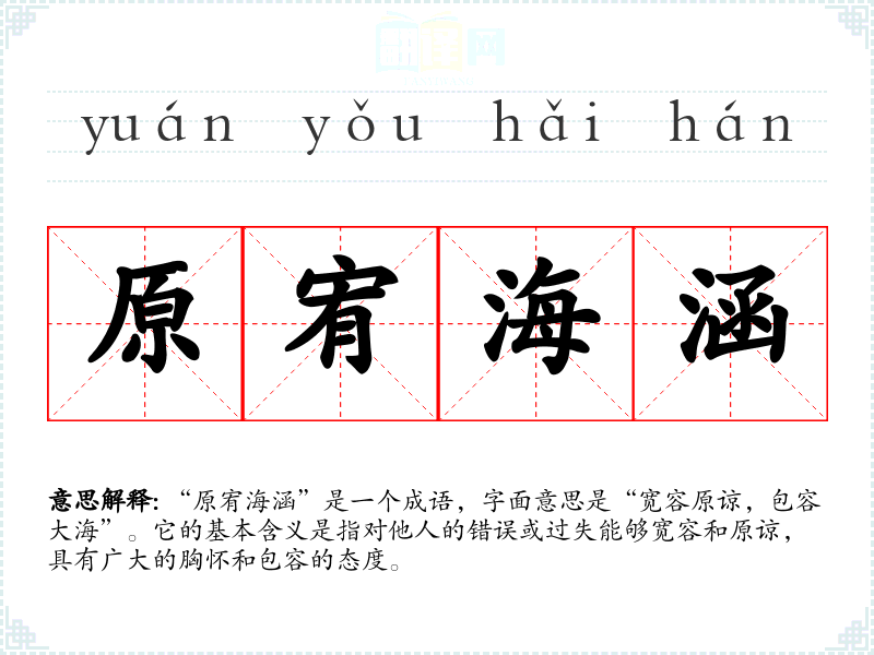- 在社会中,“原宥海涵”是促进和谐的关键,只有这样才能共建美好家园。