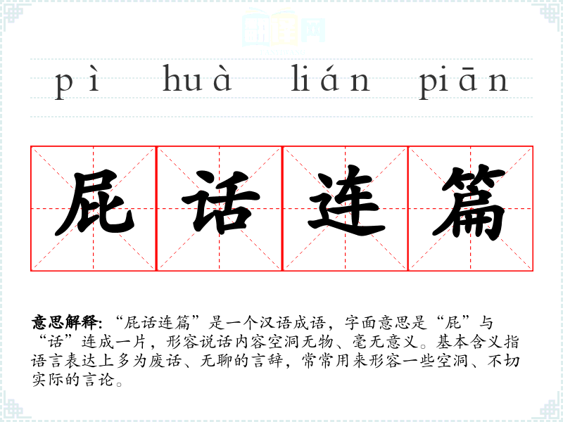 | 屁话连篇 | 指满篇都是毫无价值、令人厌恶的话。 |