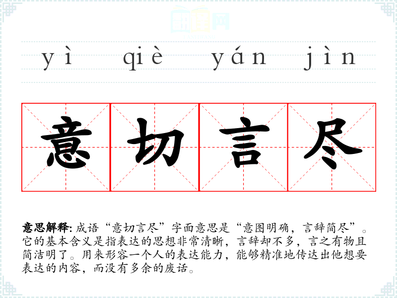- 文学作品:在小说或散文中,作者可以用“意切言尽”来形容某个角色的表达。
