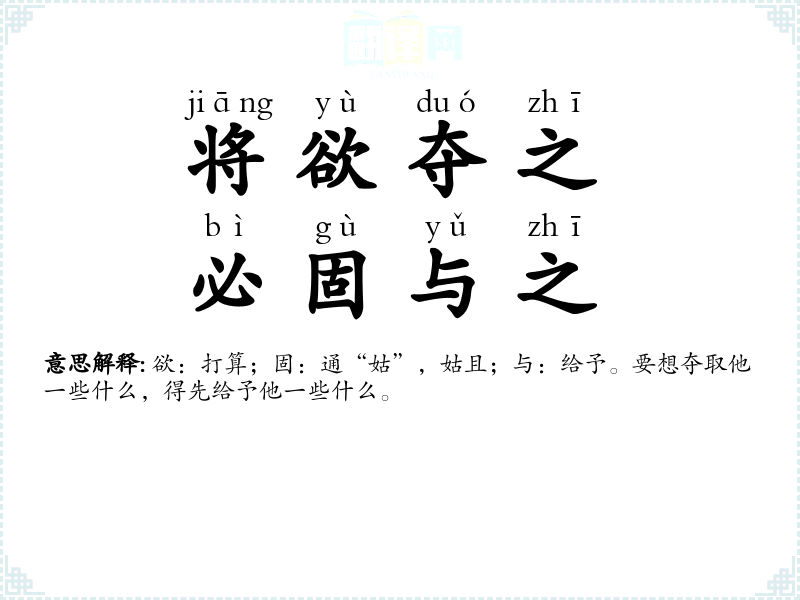 固壁,指加固壁垒,使敌不易攻击;清野,指转移人口、物资,使敌无所获取。这是对付优势入侵敌人的一种策略。 |