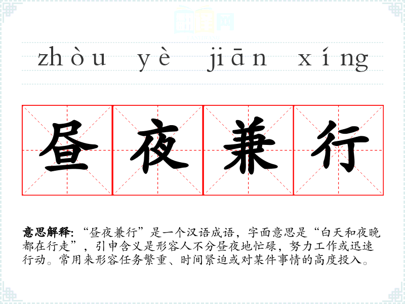 - 日常对话:在聊天时人们可以用“昼夜兼行”形容工作繁忙的状态,比如说:“最近为了项目,我真是昼夜兼行,连休息的时间都没有。”