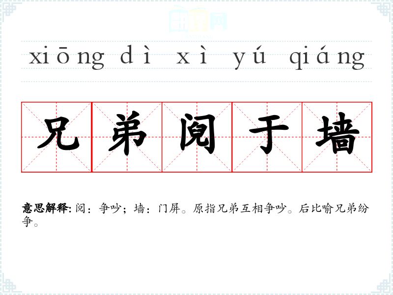 阋:争吵;墙:门屏。原指兄弟互相争吵。后比喻兄弟纷争。 |