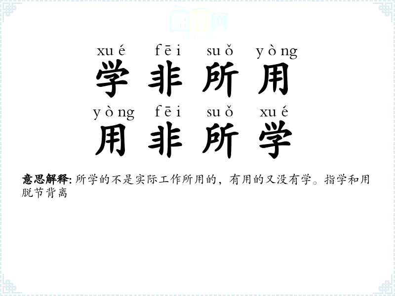 所学的不是实际工作所用的,有用的又没有学。指学和用脱节背离 |