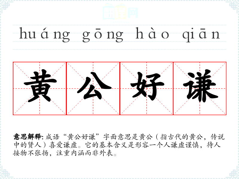 在英语中,类似于“黄公好谦”的表达可以是“humility is the foundation of all virtues”。虽然文化背景有所不同,但谦虚作为一种美德在许多文化中都是被赞赏的。