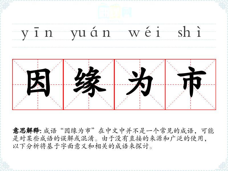 成语“因缘为市”在中文中并不是一个常见的成语,可能是对某些成语的误解或混淆。由于没有直接的来源和广泛的使用,以下分析将基于字面意义和相关的成语来探讨。