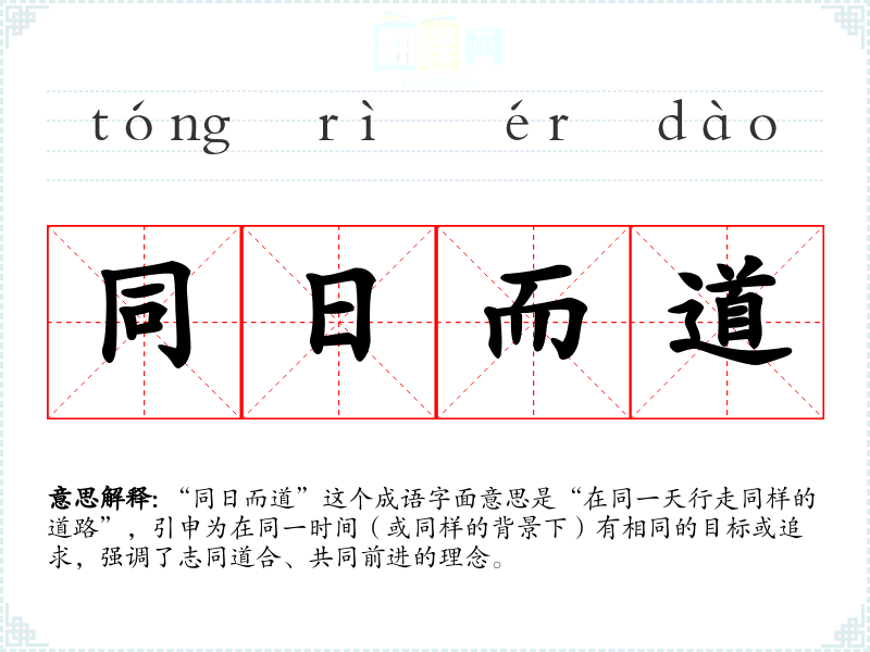 “同日而道”这个成语字面意思是“在同一天行走同样的道路”,引申为在同一时间(或同样的背景下)有相同的目标或追求,强调了志同道合、共同前进的理念。
