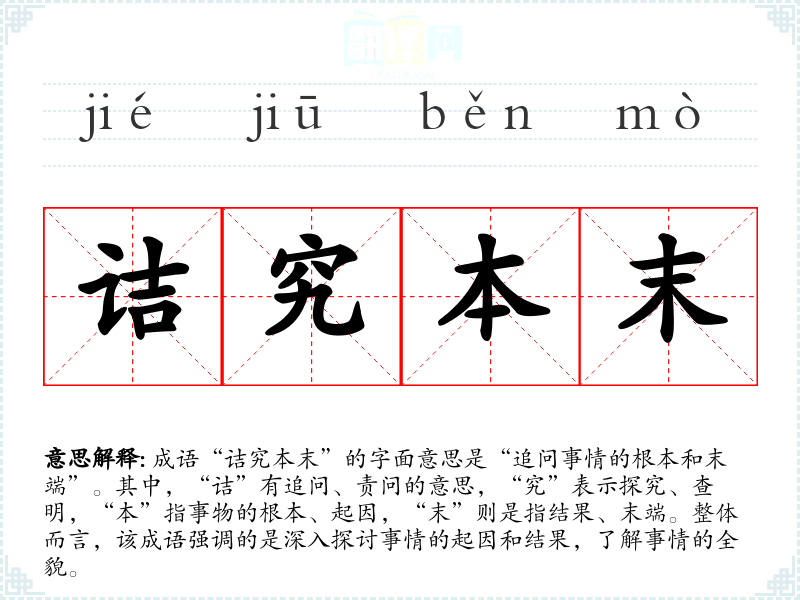 - 日常对话:在讨论某个问题时,可以用“诘究本末”来强调需要全面了解问题的各个方面。