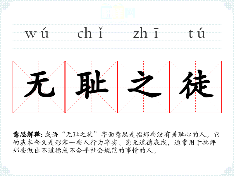 成语“无耻之徒”字面意思是指那些没有羞耻心的人。它的基本含义是形容一些人行为卑劣、毫无道德底线,通常用于批评那些做出不道德或不合乎社会规范的事情的人。