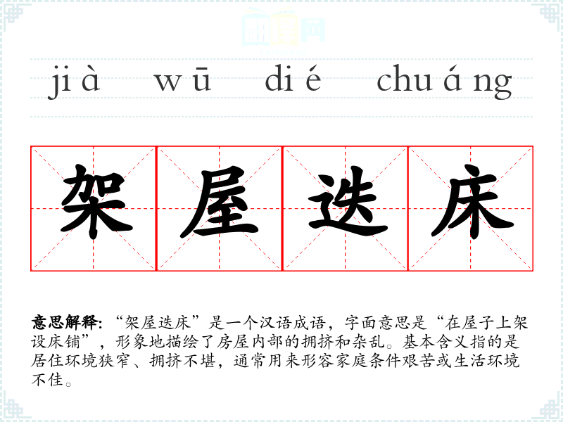 “架屋迭床”通常用于描述家庭生活的困窘和居住环境的拥挤。常见于: