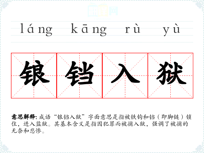 锒铛入狱 锒铛:铁索链相撞击的声音。用铁链锁起来,投入监狱。