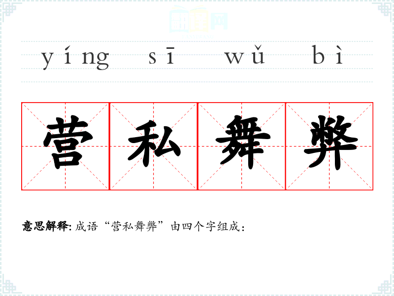 成语“营私舞弊”由四个字组成: