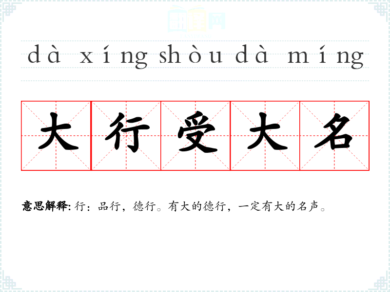 行:品行,德行。有大的德行,一定有大的名声。