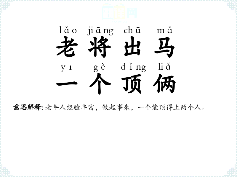 老年人经验丰富,做起事来,一个能顶得上两个人。 |