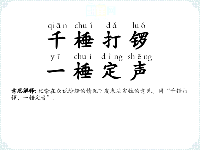 比喻在众说纷纭的情况下发表决定性的意见。 |