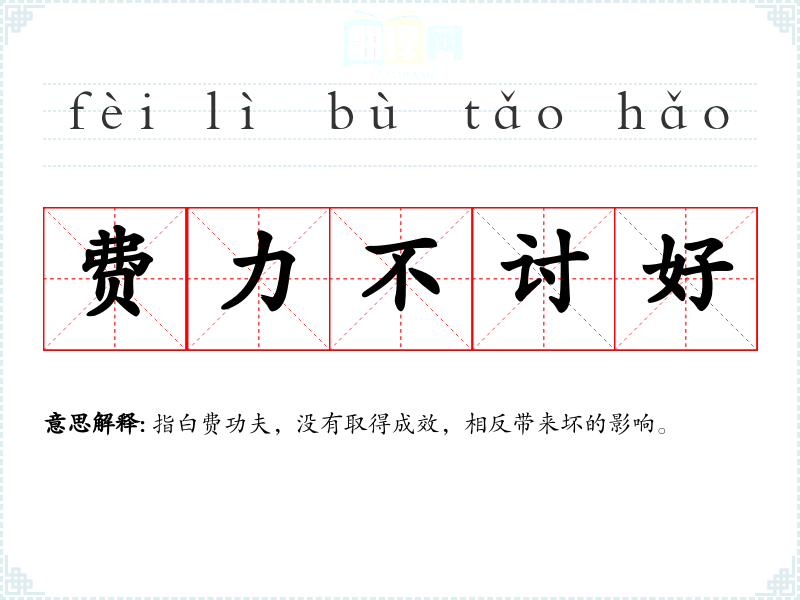| 出力不讨好 | 指白费功夫,没有取得成效,相反带来坏的影响。 |
