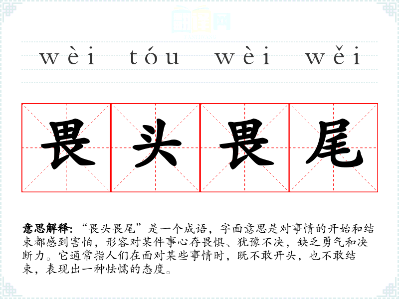 “畏头畏尾”是一个成语,字面意思是对事情的开始和结束都感到害怕,形容对某件事心存畏惧、犹豫不决,缺乏勇气和决断力。它通常指人们在面对某些事情时,既不敢开头,也不敢结束,表现出一种怯懦的态度。