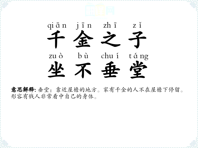 | 千金之子,坐不垂堂 |