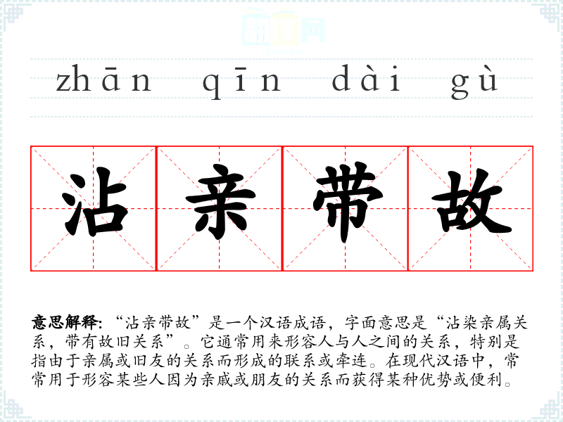 | 沾亲带故 | 故:故人,老友。有亲戚朋友的关系。 |