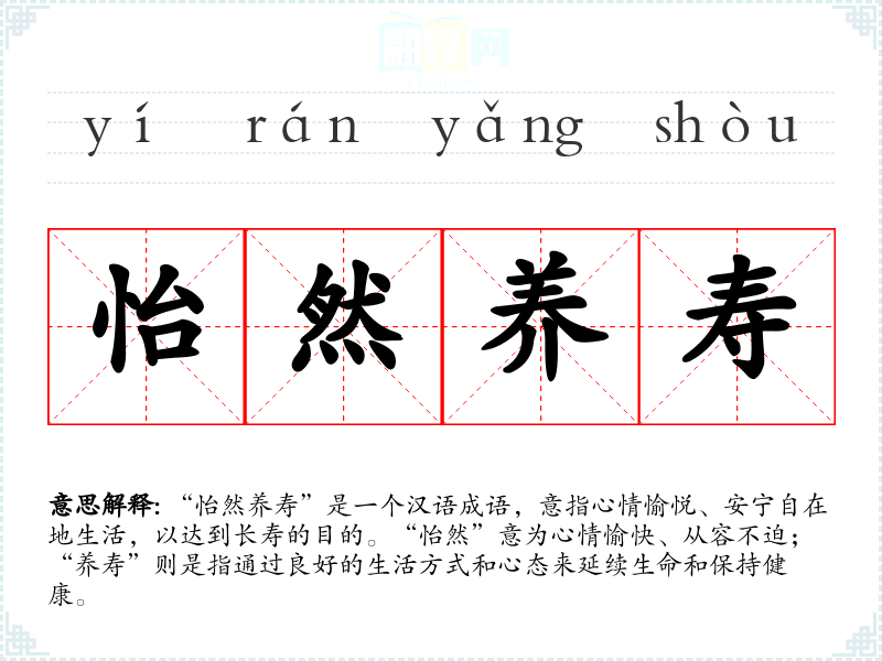 怡神养寿 怡:使愉悦。让自己精神愉悦以保养本性