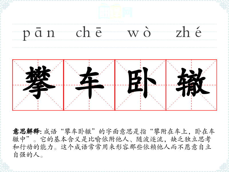 - 演讲:在激励演讲中,讲者可能会提到“攀车卧辙”来警示听众要自立自强,而不是依赖他人。