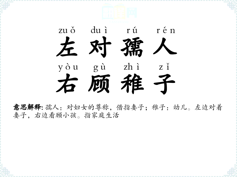 孺子:妻子;稚子:幼儿。左边对着妻子,右边照顾着孩子。 |