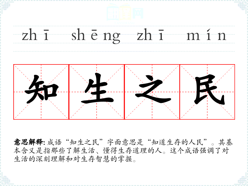 成语“知生之民”字面意思是“知道生存的人民”。其基本含义是指那些了解生活、懂得生存道理的人。这个成语强调了对生活的深刻理解和对生存智慧的掌握。