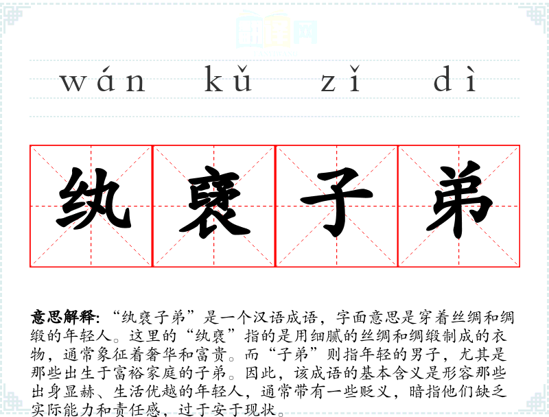 纨绮子弟 指官僚、地主等有钱有势人家成天吃喝玩乐、不务正业的子弟。