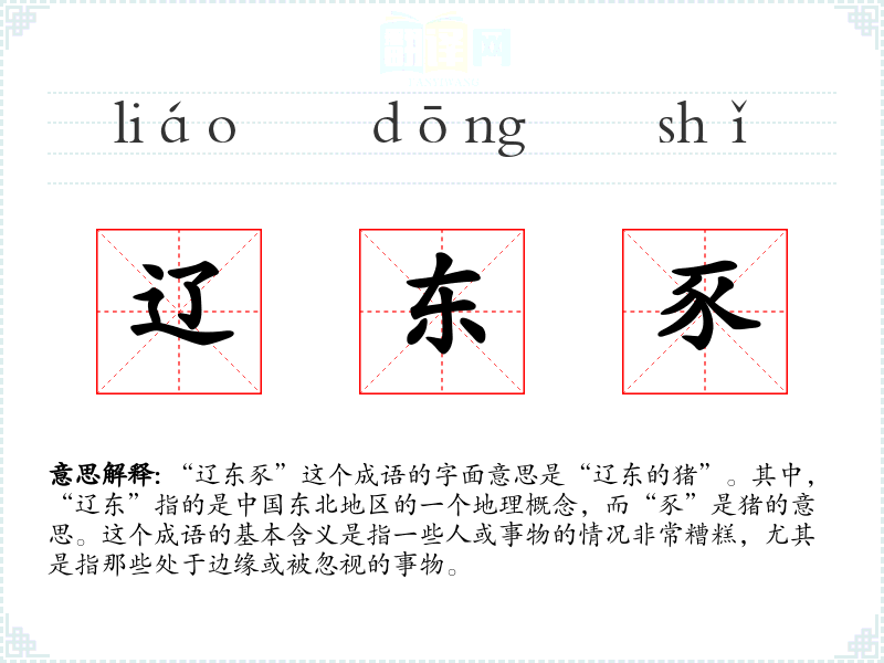 “辽东豕”这个成语的字面意思是“辽东的猪”。其中,“辽东”指的是**东北地区的一个地理概念,而“豕”是猪的意思。这个成语的基本含义是指一些人或事物的情况非常糟糕,尤其是指那些处于边缘或被忽视的事物。