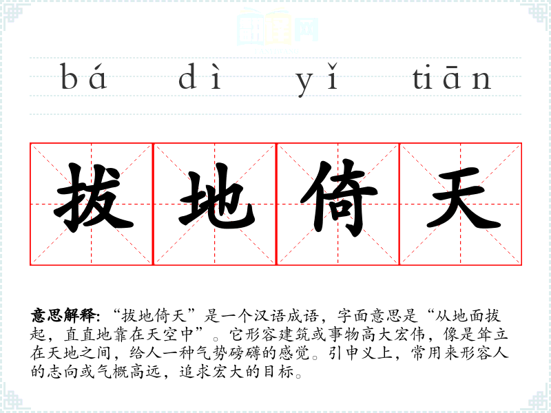 通过对“拔地倚天”的学,我意识到这个成语不仅仅是对物理高度的描述,更是对精神追求的一种激励。在语言学和表达中,掌握这样的成语能够丰富我的表达方式,使我在描述事物时更加生动和形象。