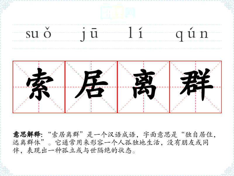 - 日常对话:用来形容朋友或同事的孤立状态,例如:“他最近总是索居离群,似乎不太愿意参与社交活动。”
